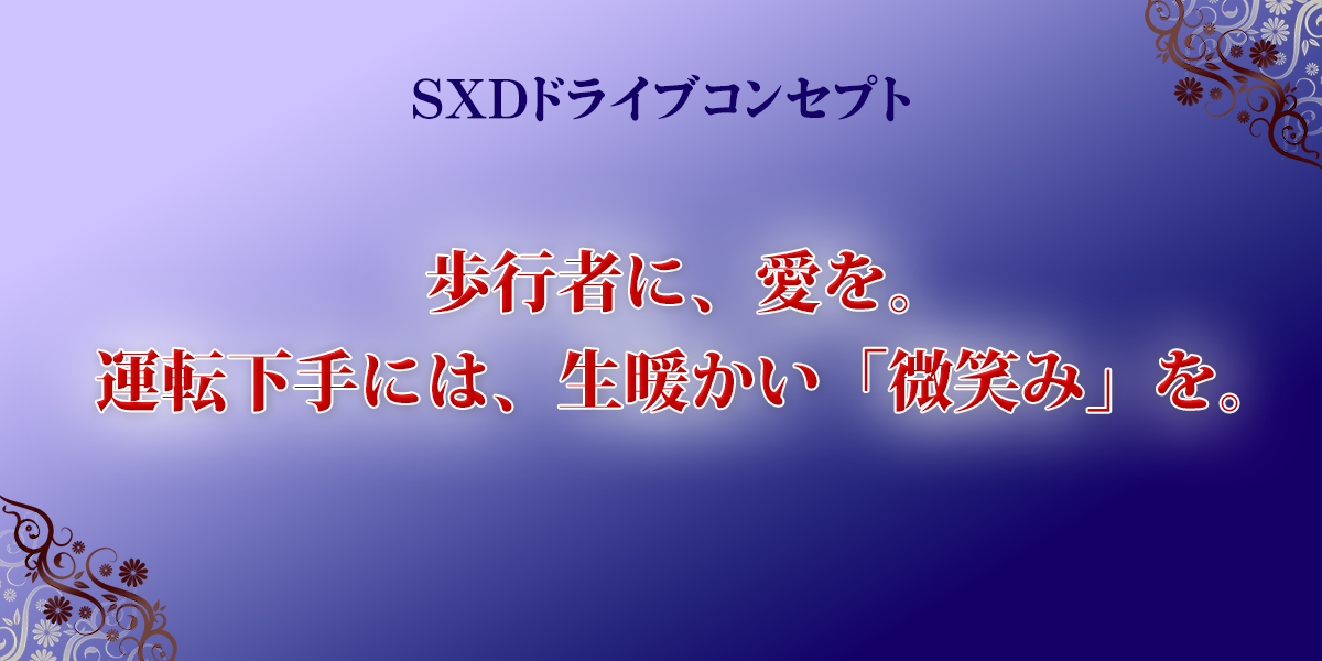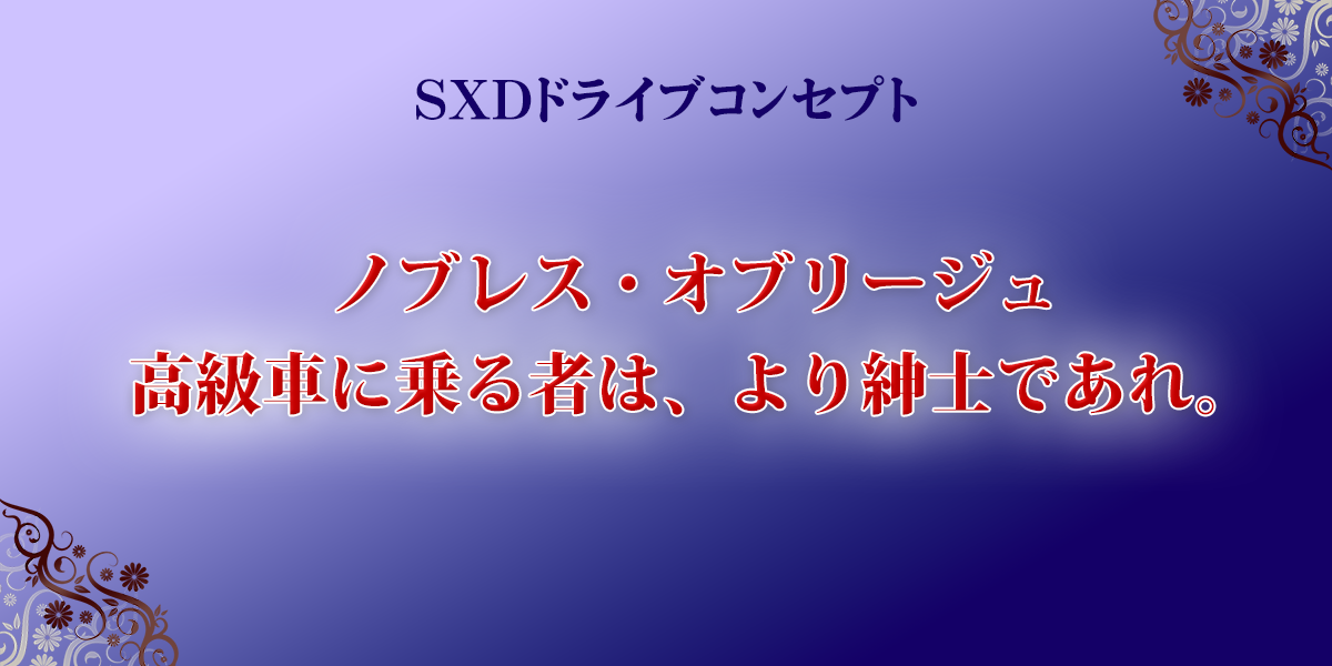 「ドライビングコンセプト」とは、運転する上で指標としている運転マナーの事。自己中心的な運転ではなく、常に周囲に注意を払う。イライラした荒い運転はせず、上質なシルクのようなドライビングラインができるドライバーこそが「SXD」なのです。